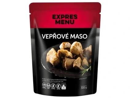 Kousky vepřové plece dušené doměkka ve vlastní šťávě, dochucené jen solí.