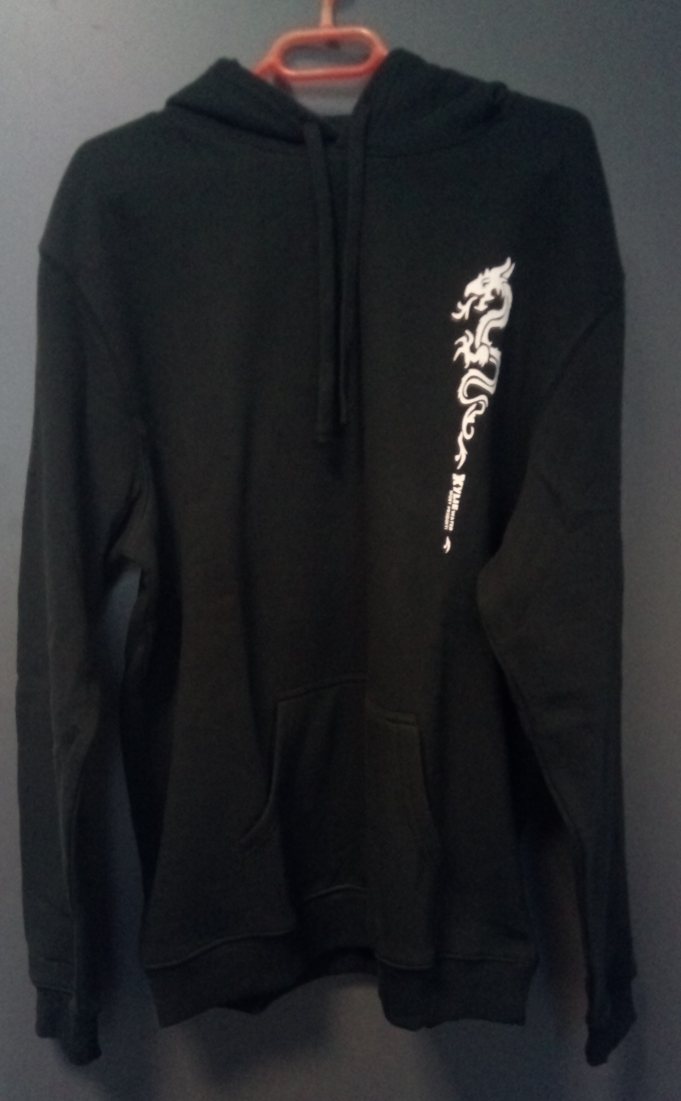Krásná černá mikina s bílým drakem.