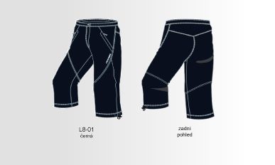 popis: volní střih, vnitřní vyjímatelné spodky s cyklistickou vloužkou Coolmax WOMEN, zapínání v pase, 3/4 nohavice, stahovaání konců nohavic, 2 přední kaspsy, poutka na pásek, rozšířené velikosti
