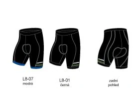 přiléhavý střih, 9 panelové, pánská profilovaná gelová antibakteriální cyklovložka, v pase do gumy, protiskluzový silikon na lemu nohavic, ploché švy reflexní prvky.