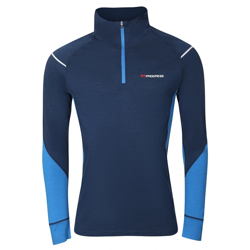 MW NRZ 170 pánský funkční merino rolák s krátkým zipem PROGRESS XL > tm.modrá/modrá